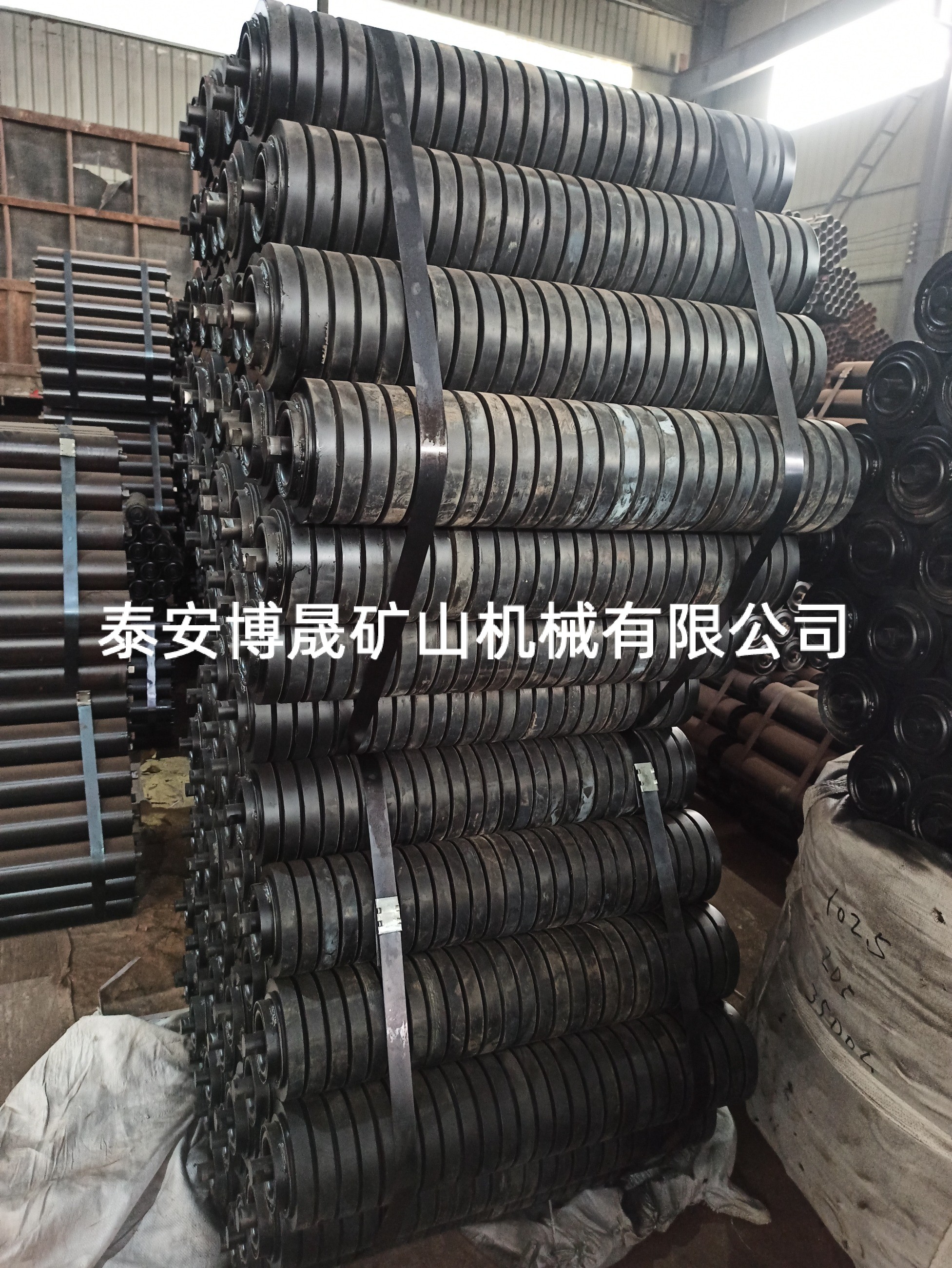緩沖托輥表面由冷鉆接連體彈性膠環(huán)和鎖環(huán)構成,緩沖托輥安裝在輸送機受料段的下方,減少輸送帶所受的沖擊,延長輸送帶使用壽命。緩沖托輥主要起緩沖作用。